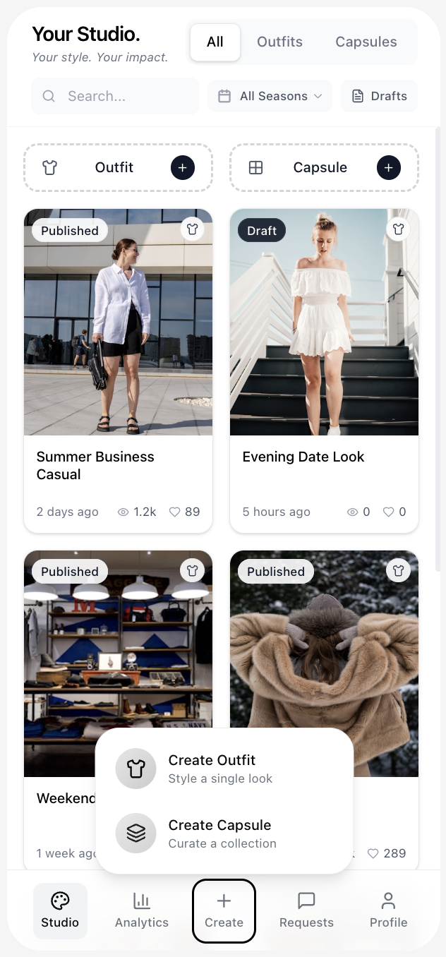 Monetize your audience with subscription-only outfits and capsules, PPV content and personal styling requests — all on one elegant platform.